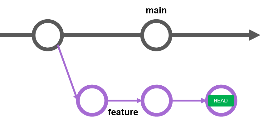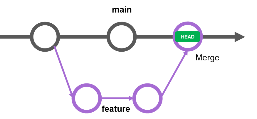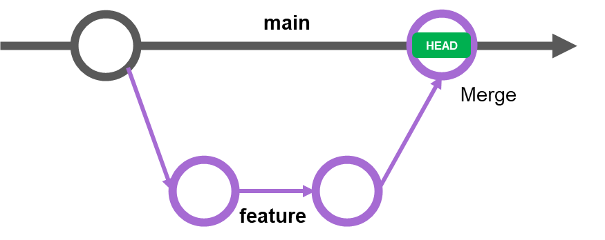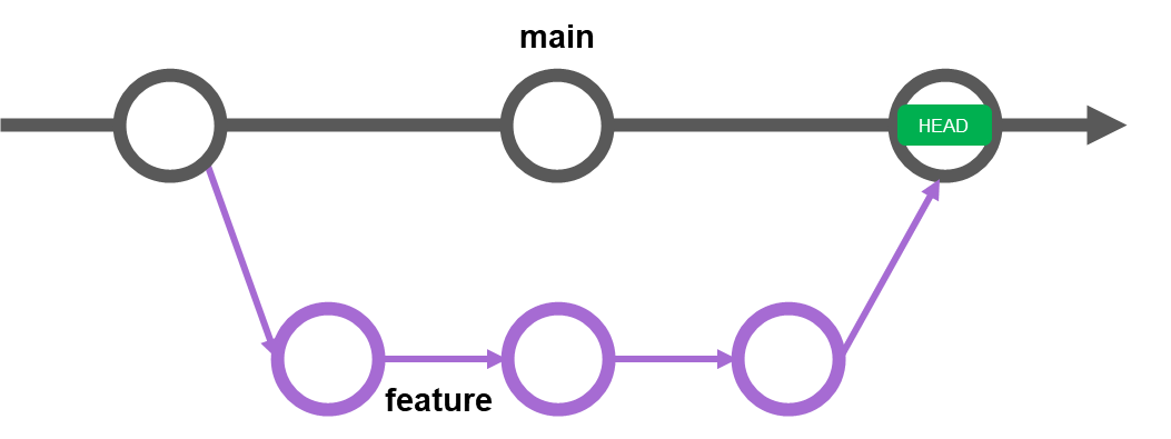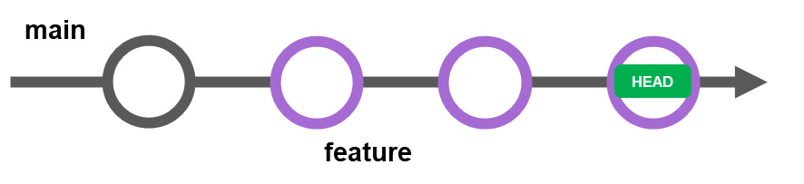 main branch의 레퍼런스 포인터가 feature branch의 commit(HEAD)을 가리킵니다.