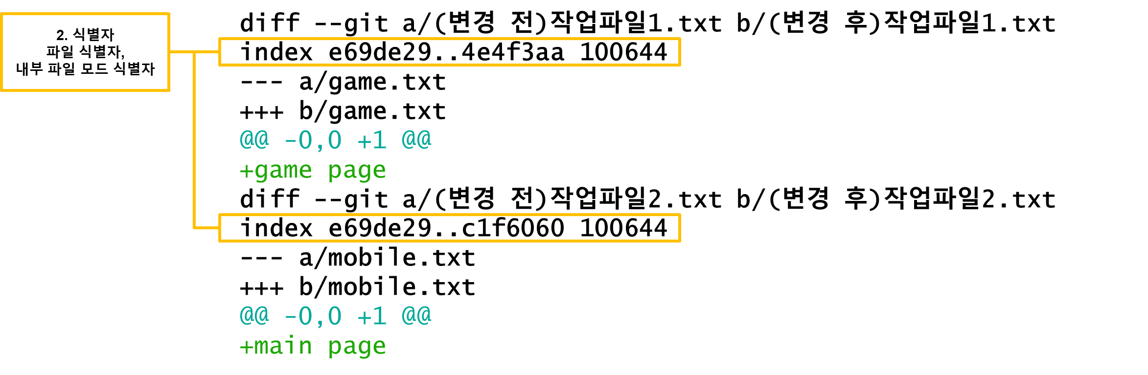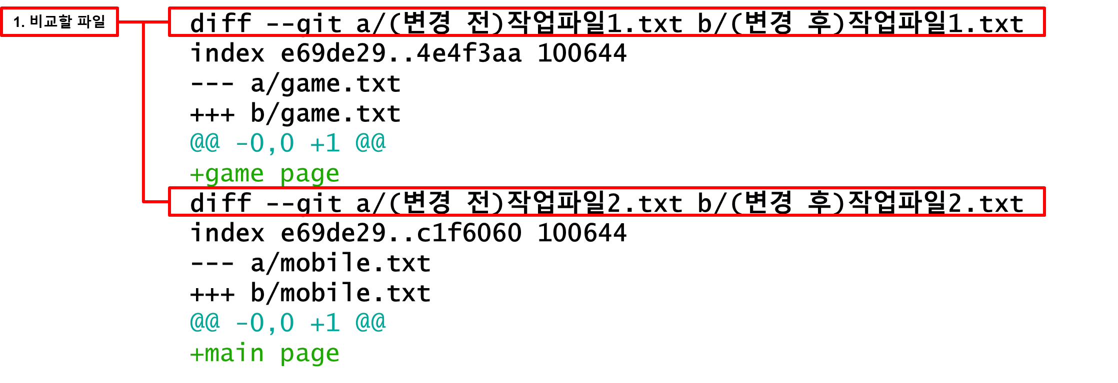 매개변수에 먼저 입력한 commit1이 ---a가 되고 후에 입력한 commit2가 +++b가 됩니다.
