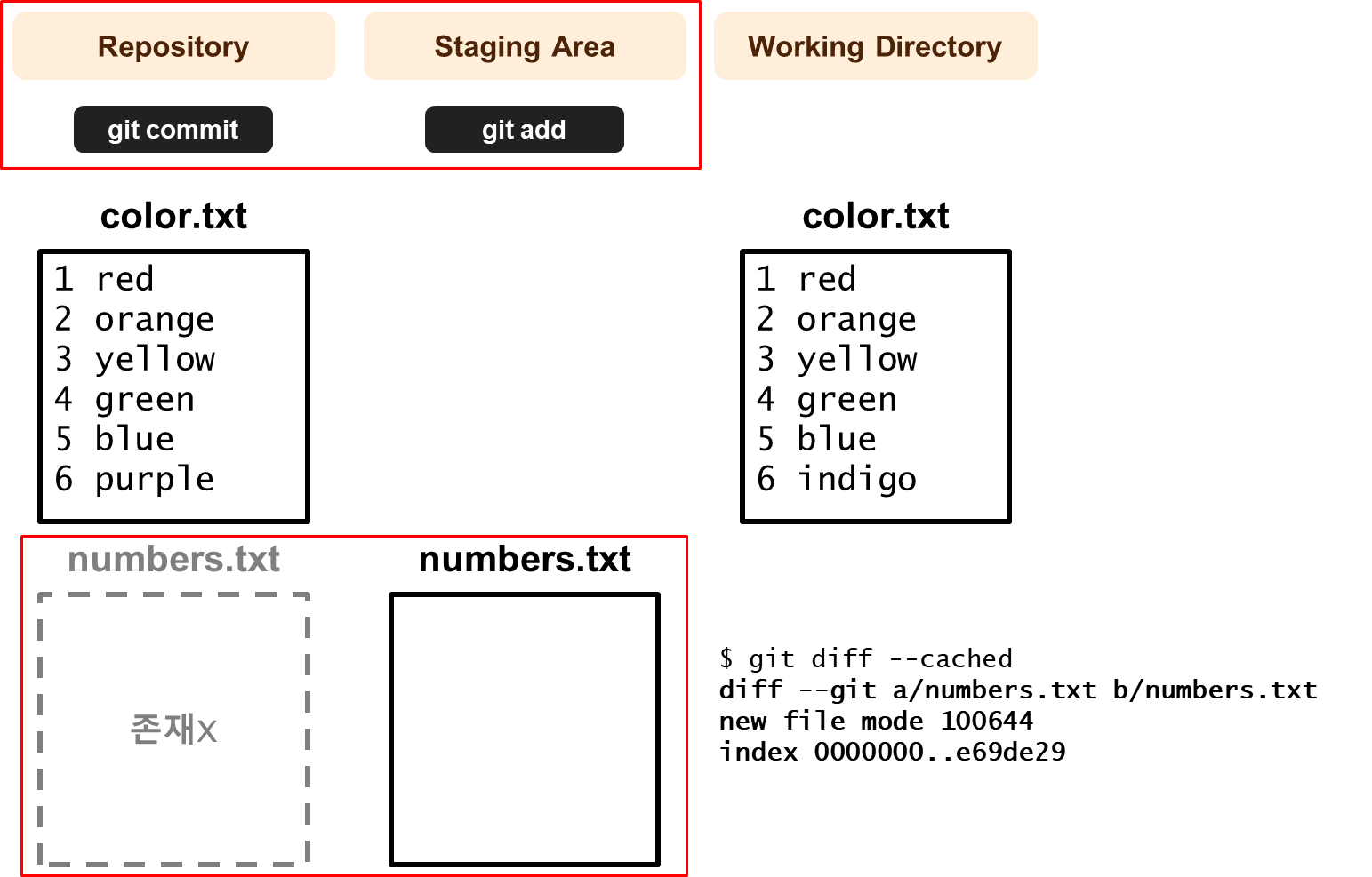 (HEAD, --cached)