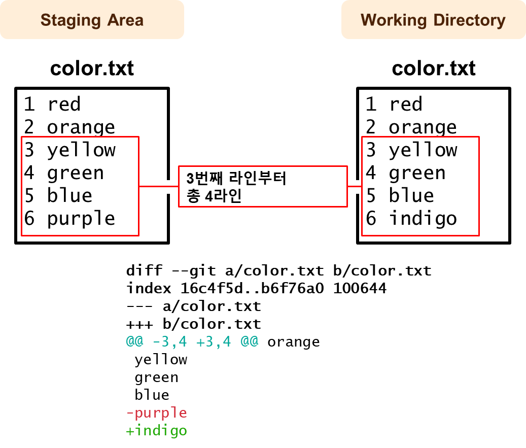아무런 옵션 없이 git diff 명령어를 실행하면,