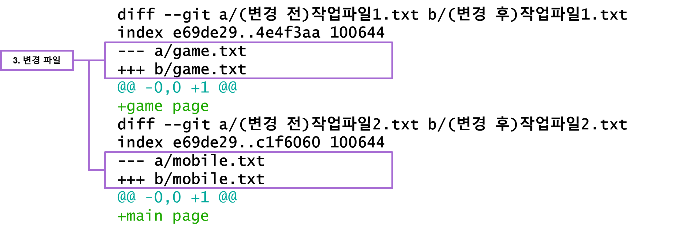 git diff는 깃에서의 변경 사항들을 보여주는 명령어입니다.
