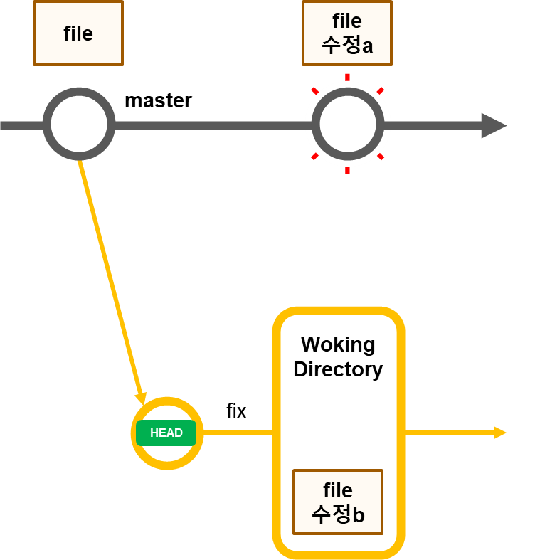 이 때, 변경사항을 commit하거나 stash해야 브랜치를 이동할 수 있습니다.