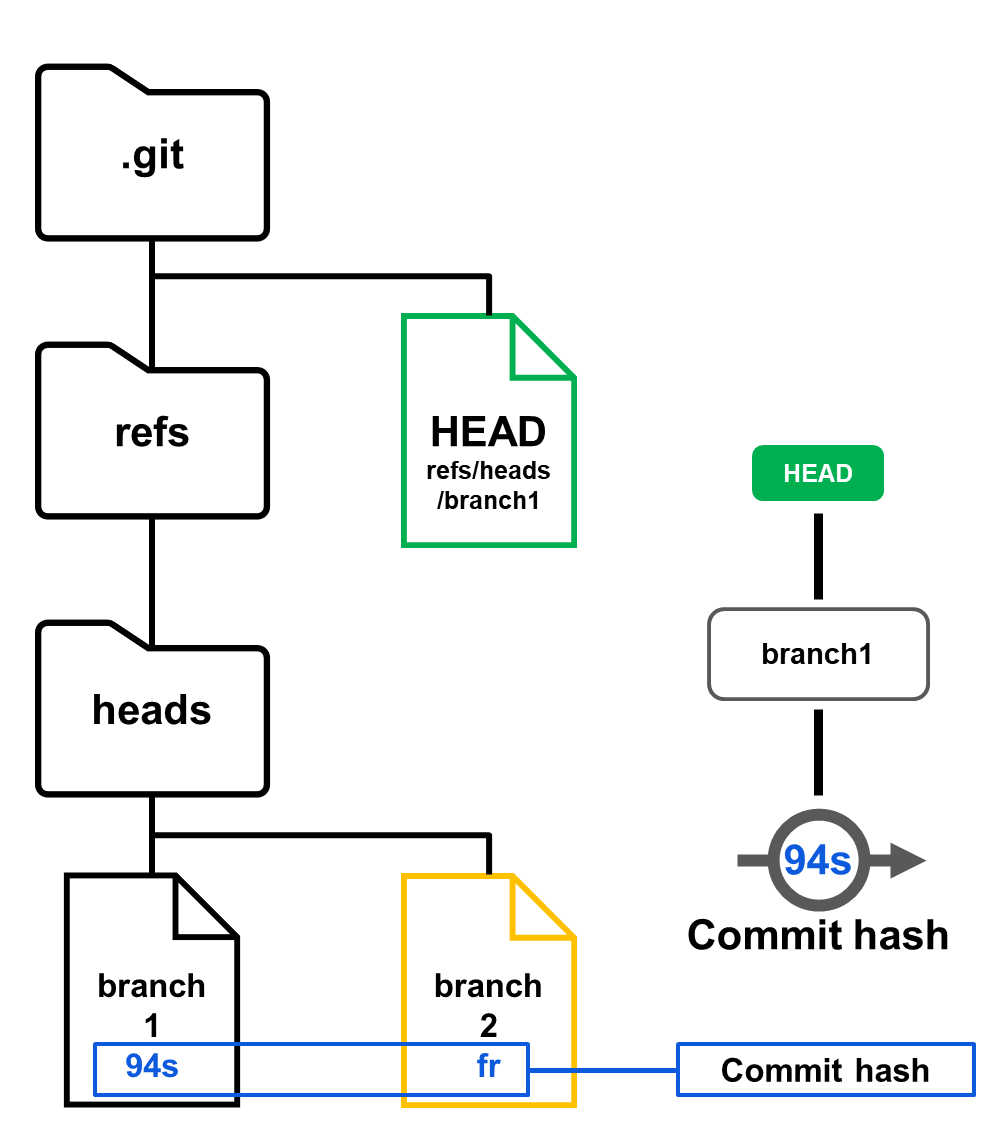 일반적으로 .git/HEAD는 branch의 경로를 가리킵니다.