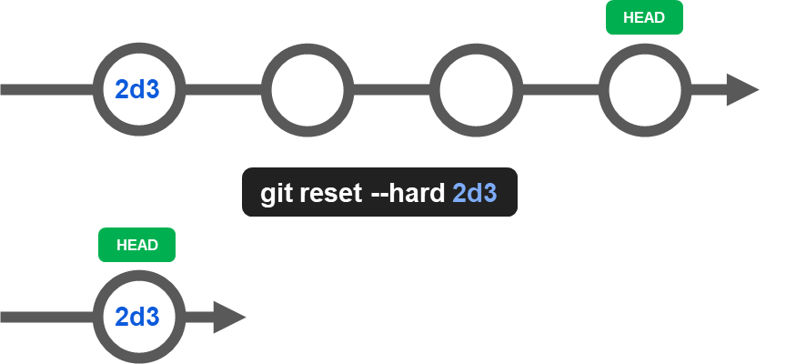 만약 변경사항 또한 working directory에 남지 않도록 하려면 --hard 옵션을 추가합니다.