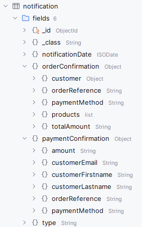 MongoDB의 알림(notification)에 저장할 데이터는 아래와 같습니다.
