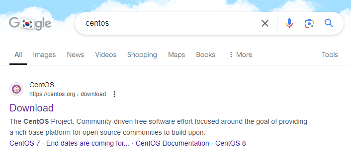 검색창에 centOS 를 검색하고 다운로드 페이지로 접속하고,