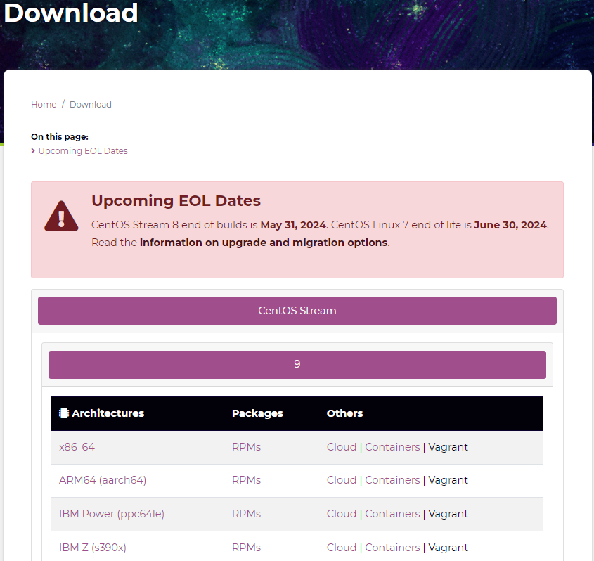 CentOS Stream 8의 빌드는 24년 3월 31에,