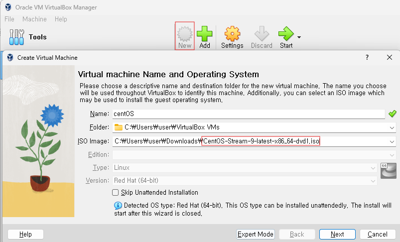 ISO Image는 위에서 설치한 CentOS Stream ISO 파일을 선택합니다.