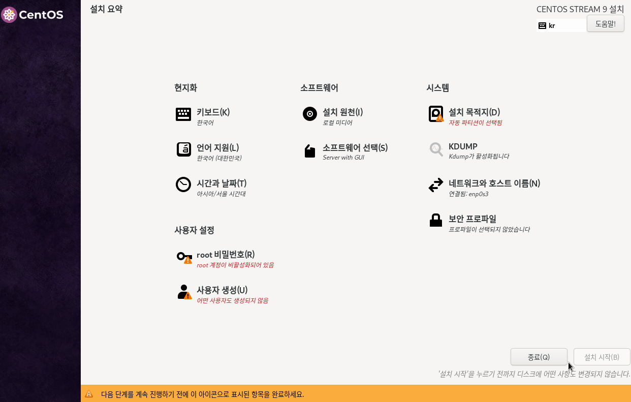 CentOS를 설치합니다.