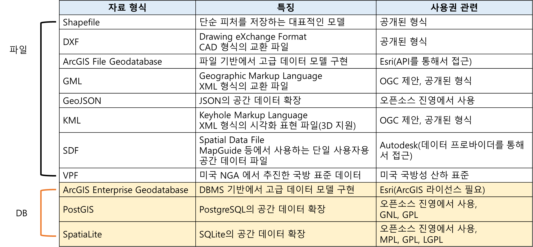 Shapefile의 한계를 극복하고자 만들어졌습니다.