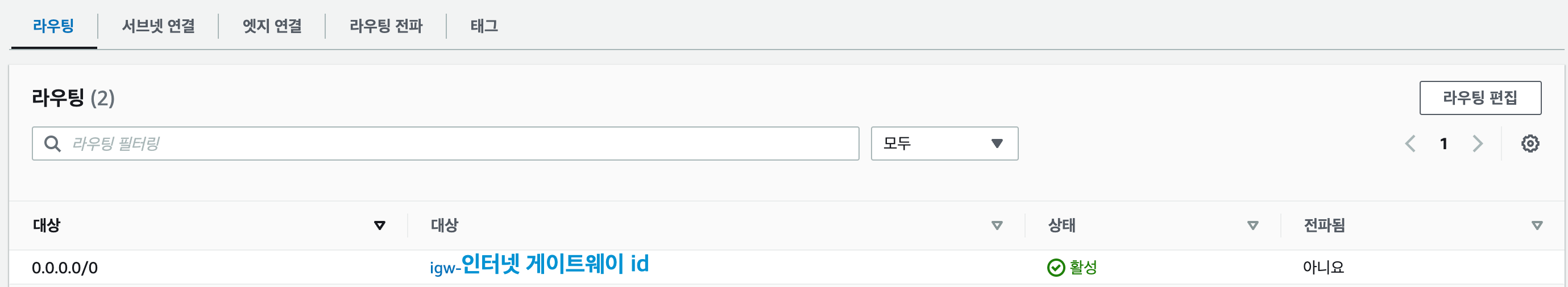 9. 라우팅 테이블(인터넷 게이트웨이 활성) 점검