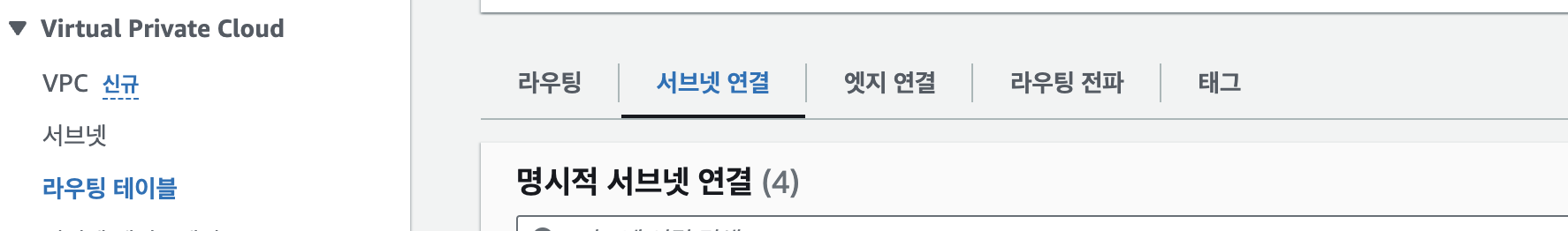 VPC > 라우팅 테이블 > 서브넷 연결 > 명시적 서브넷 연결에 서브넷이 있는지 확인하세요.