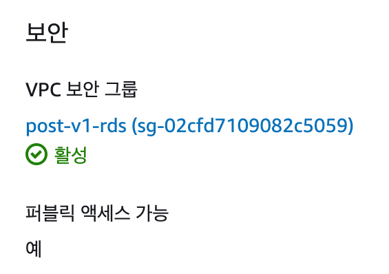 1. RDS 연결&보안 > 보안 > 퍼블릭 액세스 가능 여부 확인