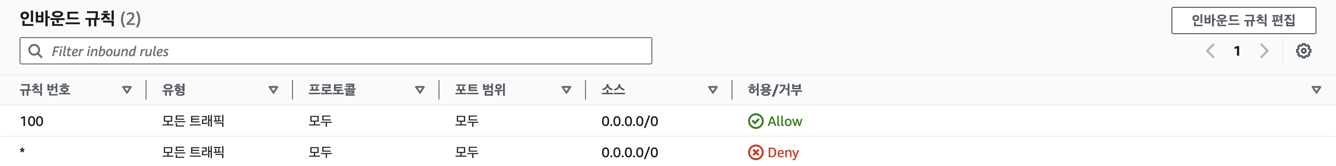 모든 트래픽을 허용하는 것입니다.
