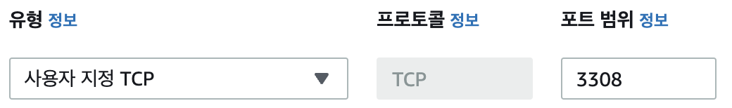 다만 다른 port 번호를 사용한다면 EC2에서 rds 로 접근할 시, 명령어에 -P 3308 을 추가해줍니다