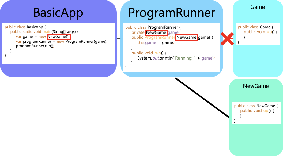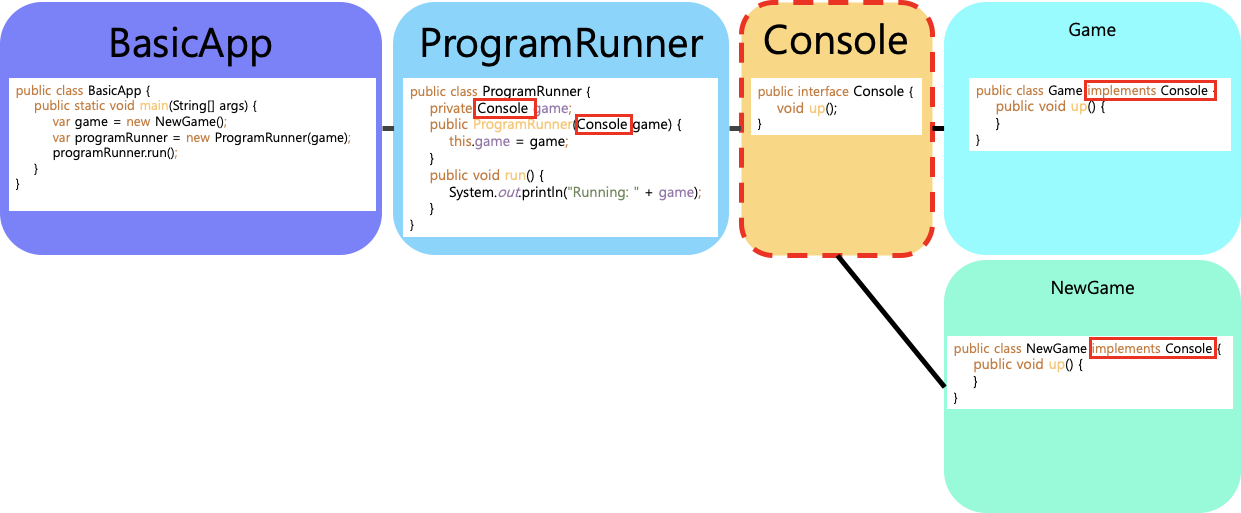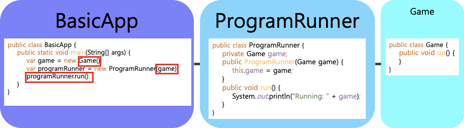 여기서 Game은 ProgramRunner의 의존성입니다.
