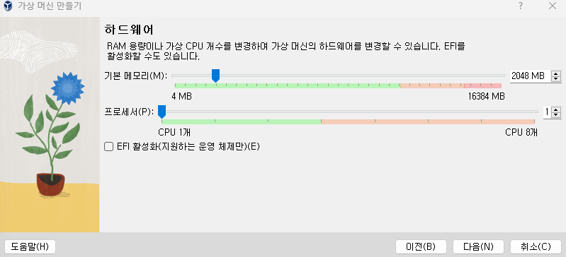 RAM과 CPU 설정을 합니다