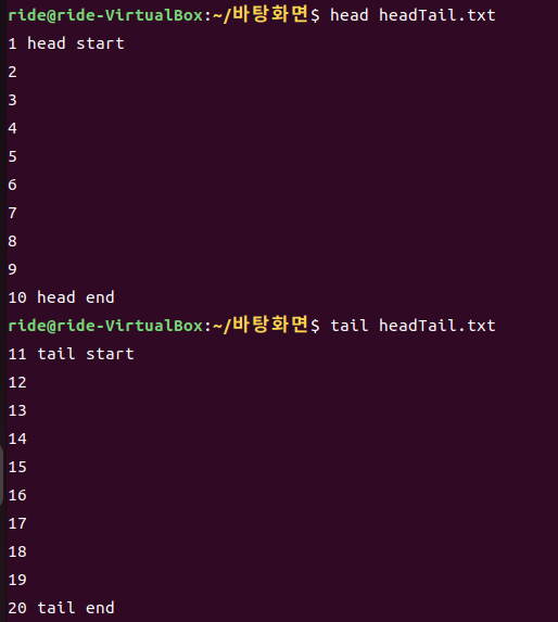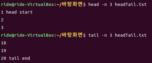 각각 파일의 머리와 꼬리 부분인 부분을 보거나, 관련된 작업을 하는 데 사용됩니다.