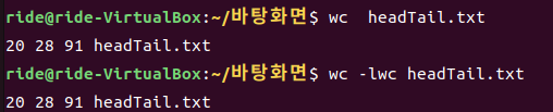 줄수, 단어 수(공백이나 공백과 비슷한 문자로 구분), 바이트 수 순으로 출력되며,