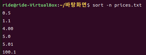 숫자로 정렬하려면 -n 옵션을 사용합니다.