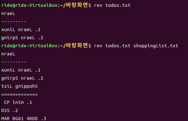 rev는 cat이나 tac처럼 파일의 내용을 출력합니다.