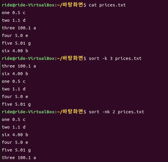 (sort는 기본적으로 -k 1 이 적용되어있습니다)