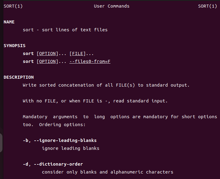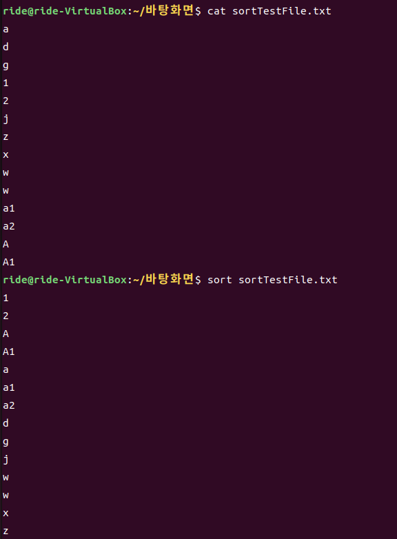 sort명령어는 그 자체로 유용하지만, ls명령어 등 다른 명령어의 결과값을 정렬할 때 더 유용하게 사용할 수 있습니다.