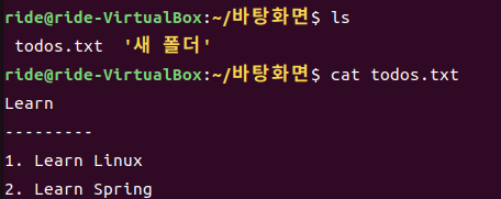 cat을 이용해서 파일의 내용을 터미널에 출력할 수 있습니다.