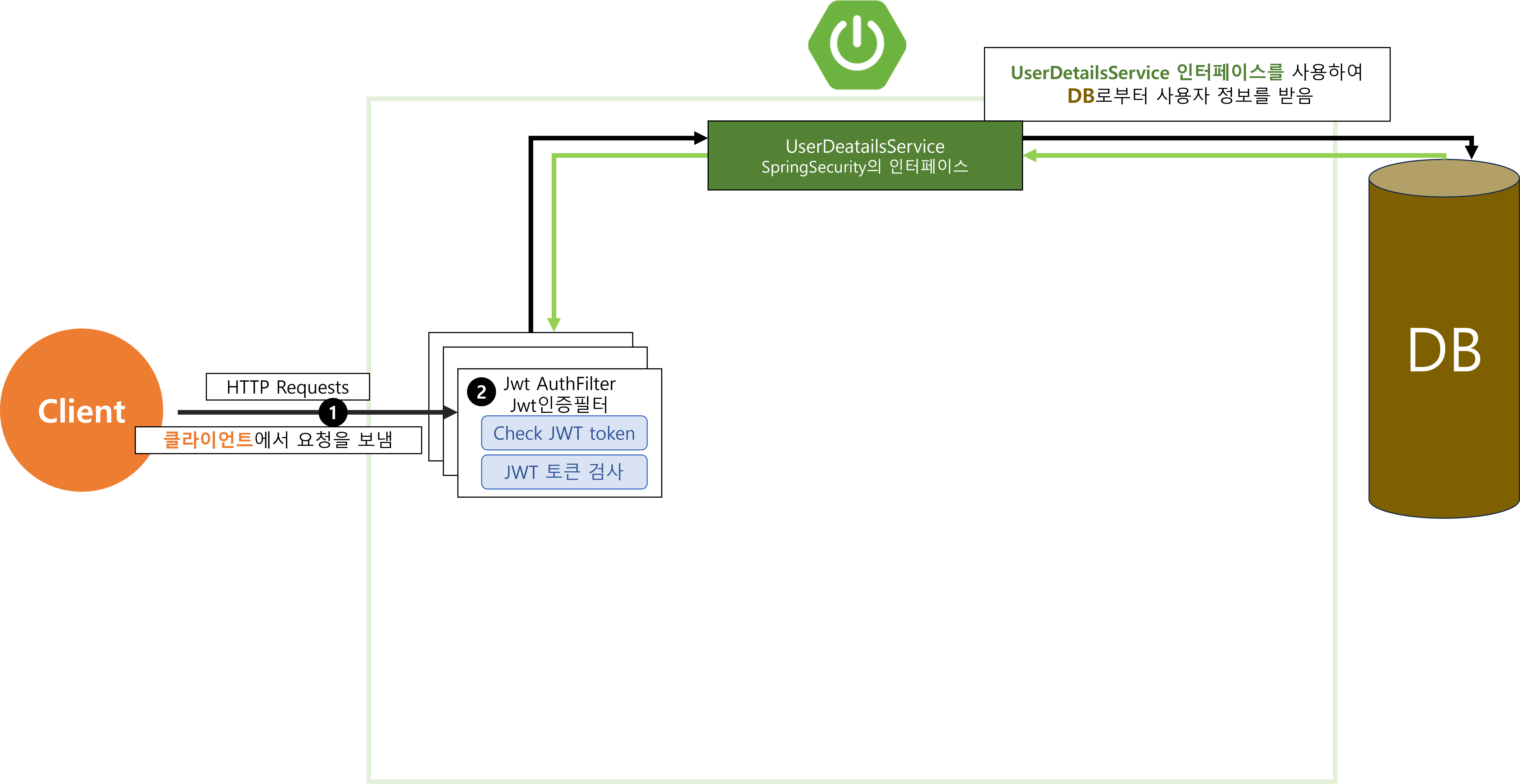 SpringSecurity에서 사용자의 정보를 담기 위한 핵심 인터페이스로 UserDetails를 사용합니다.