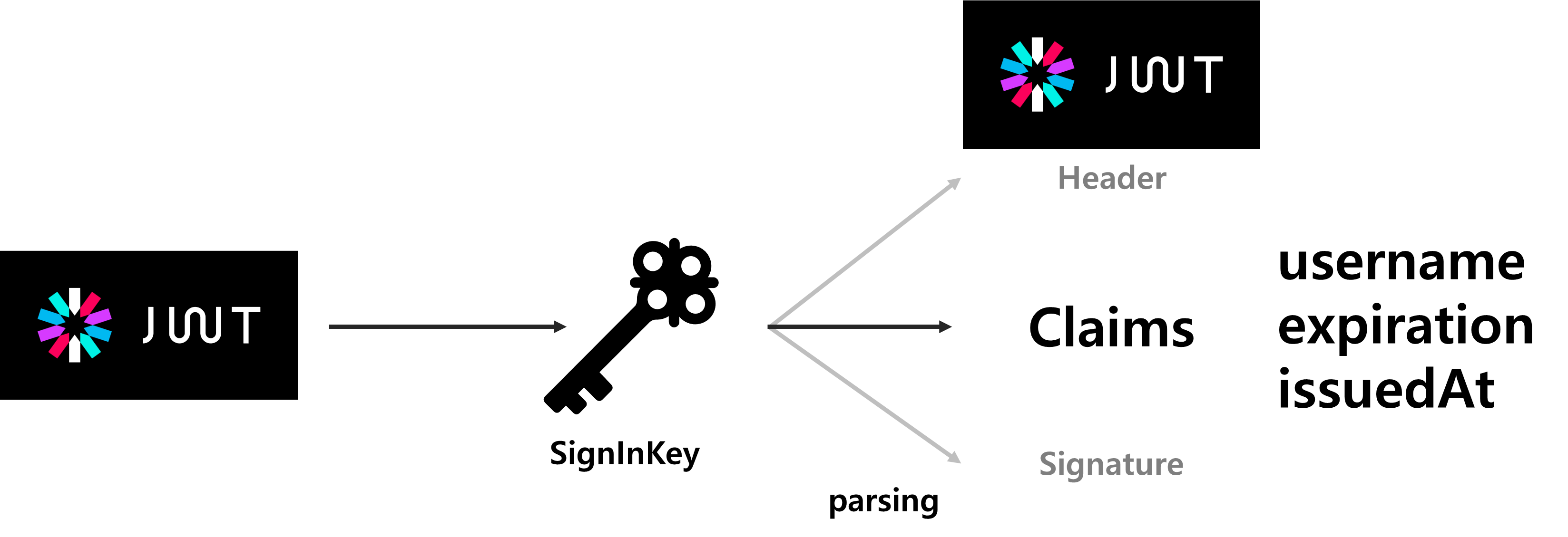 토큰을 파싱하는 것은 금고를 열고(verifyWith) 물건을 빼는 것(getPayload)에 비유할 수 있습니다.