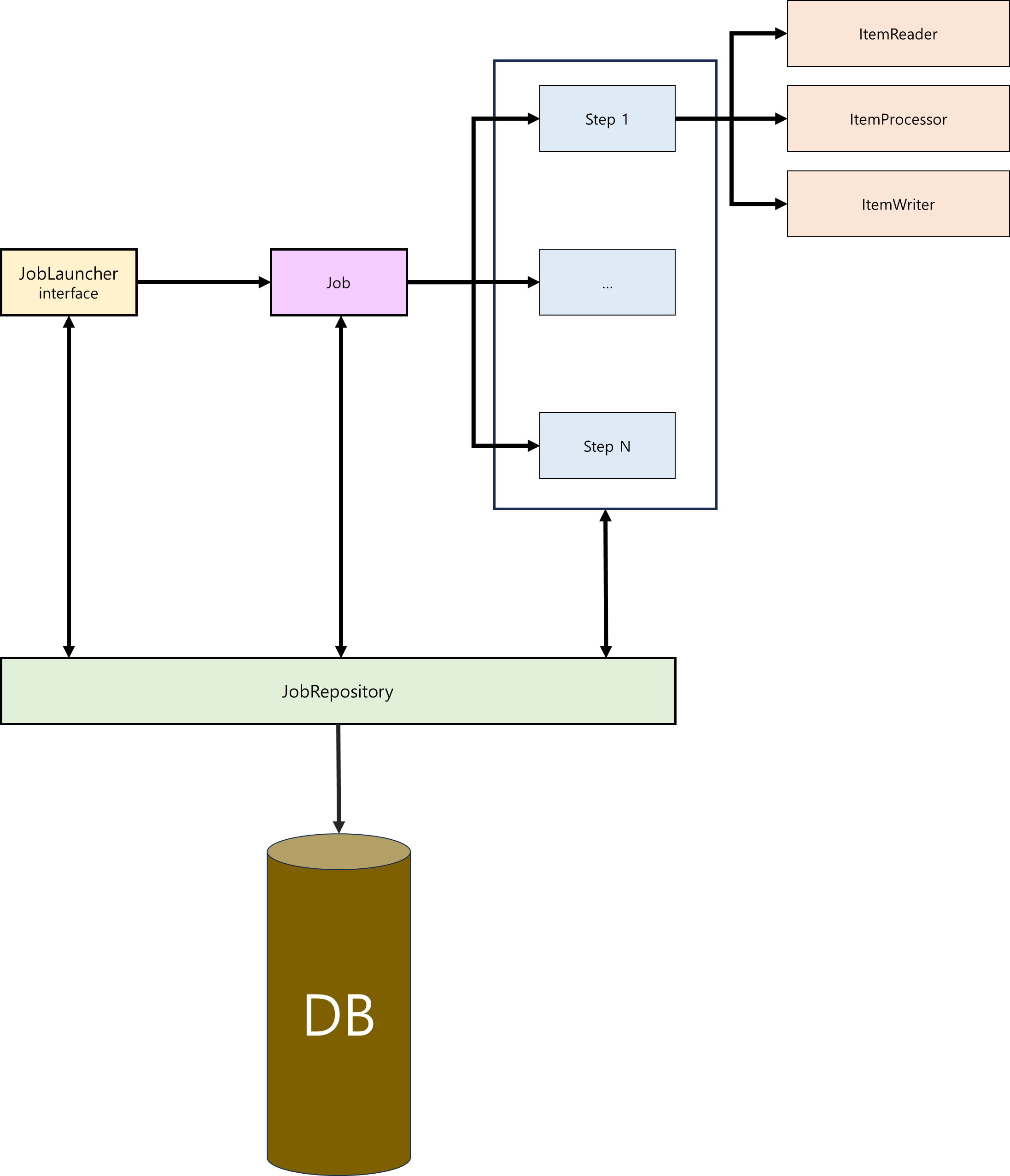 Job은 배치 작업을 의미합니다. Job에는 여러 Step이 있습니다.