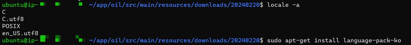 서버가 한글을 인식할 수 있도록 ko_KR.utf8을 설치합니다.