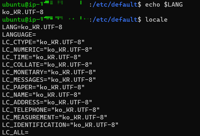 LANG=ko_KR.UTF-8