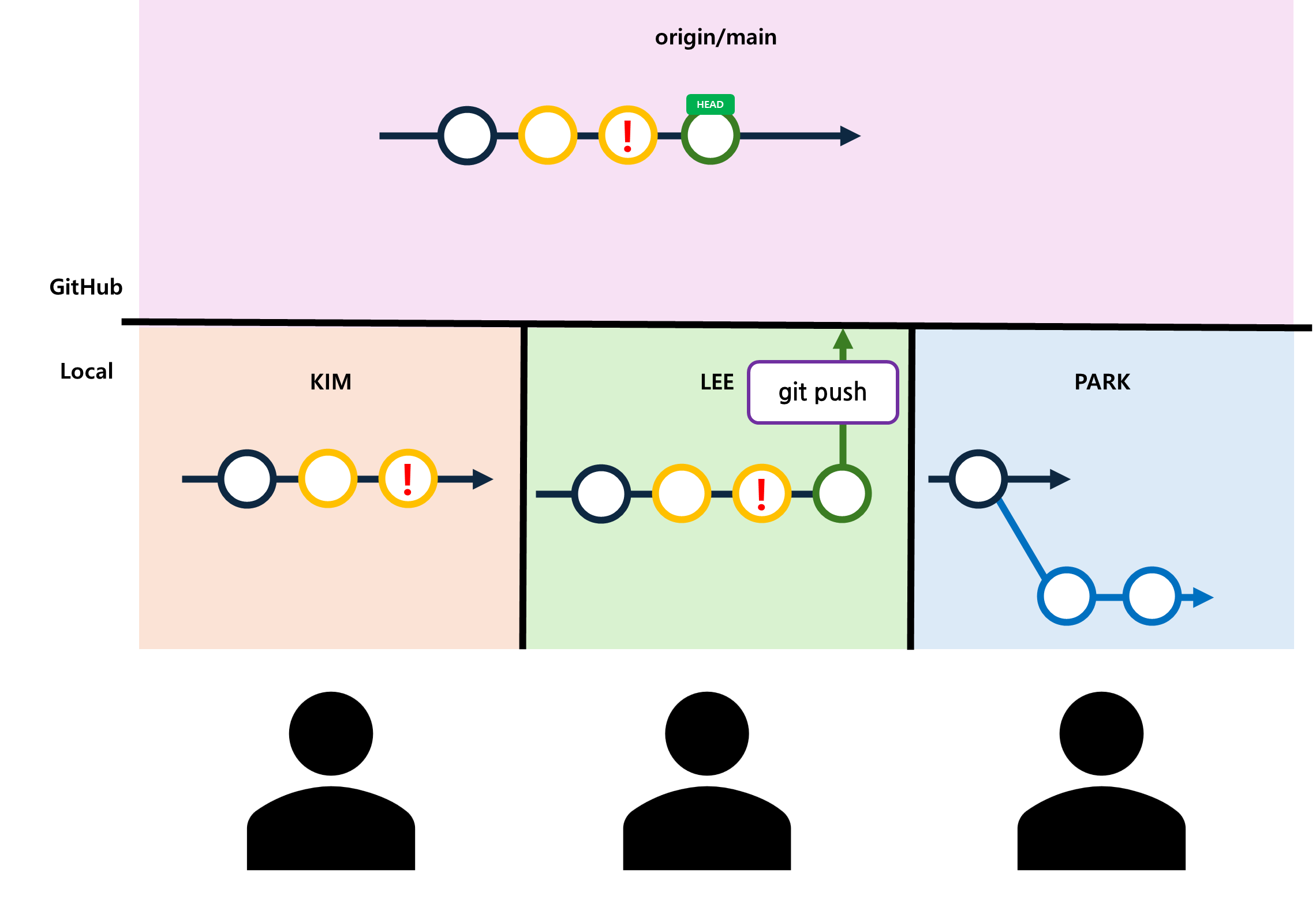 제목[SVN] SVN; Subversion 주요 개념과 흐름(기본 형태 + 브랜치)관련 게시글목차1. SVN이란?2. SVN구조 및 흐름1. SVN이란? - Git과 함께 알아보는 주요 개념SVN(Subversion)은 중앙 집중형 버전 관리 시스템입니다.SVN은 네트워크를 통해 여러 사용자가 동시에 작업할 수 있도록 합니다.svn과 git은 유사하지만 차이가 있습니다.이번 섹션에서 svn의 주요 개념을 알아보면서 git과 어떤 차이가 있는지 살펴보도록 하겠습니다.1.1 RepositoryRepository는 모든 버전의 파일과 디렉터리가 저장되는 중앙 저장소입니다.각 파일의 변경 이력이 기록되며, 여러 사용자가 접근할 수 있습니다. Git의 로컬 및 원격 Repo를 뜻합니다.1.2 Working Cop..