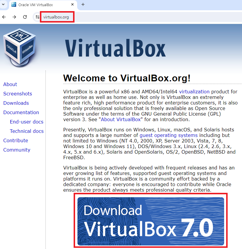 먼저 virtualbox.org 에 접속하고 Download 이미지를 클릭합니다.