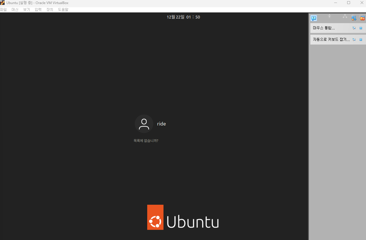 VM에 OS설치를 완료했습니다.