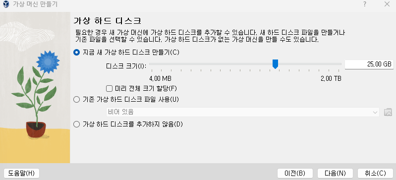 가상 하드 디스크의 크기를 결정합니다.