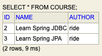 Course{id=2, name='Learn Spring JDBC', author='ride'}