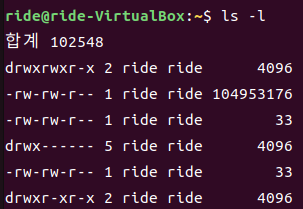 ls -l 명령어를 통해 현재 디렉토리에 있는 파일, 하위 디렉토리의 권한 수준을 확인할 수 있습니다.